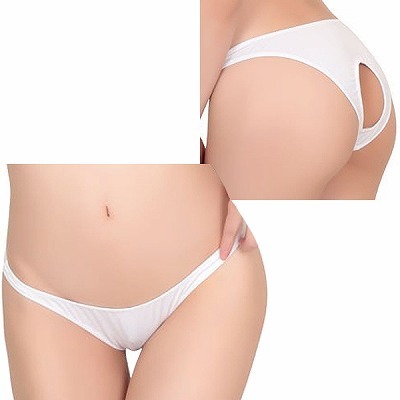 シースルー&レース生地食い込みオープンバックショーツ ホワイト ホワイト