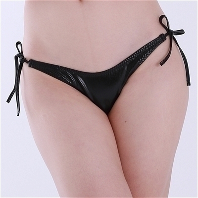 チェリーラブ メタリック生地脇ひも結びハイレグフルバックショーツ (ブラック) ブラック