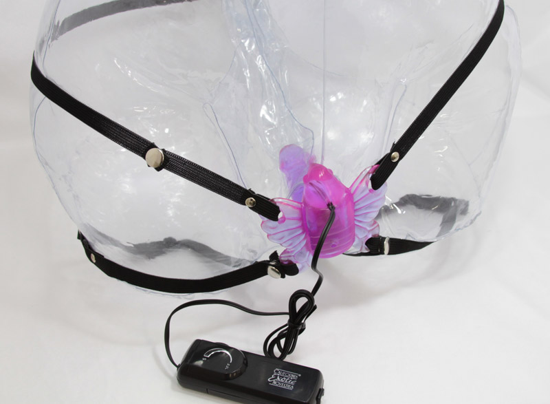 ペニスを背負った蝶が過激にバイブ!ヴァギナに密着して3点を刺激する装着型ローター「ビーナスペニス」。しっかりと固定できるベルト付きなので、アソコにピタリと密着!膣内はもちろん、クリトリスやアナル周辺まで責めまくります。振動の強弱はコントローラーで無段階調節が可能です。単三電池×2本使用。
