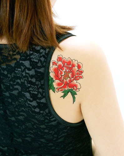 タトゥーシール 赤牡丹点描