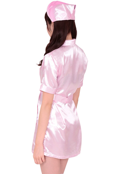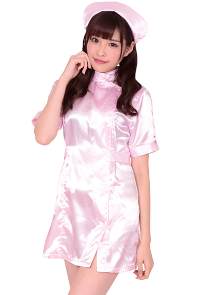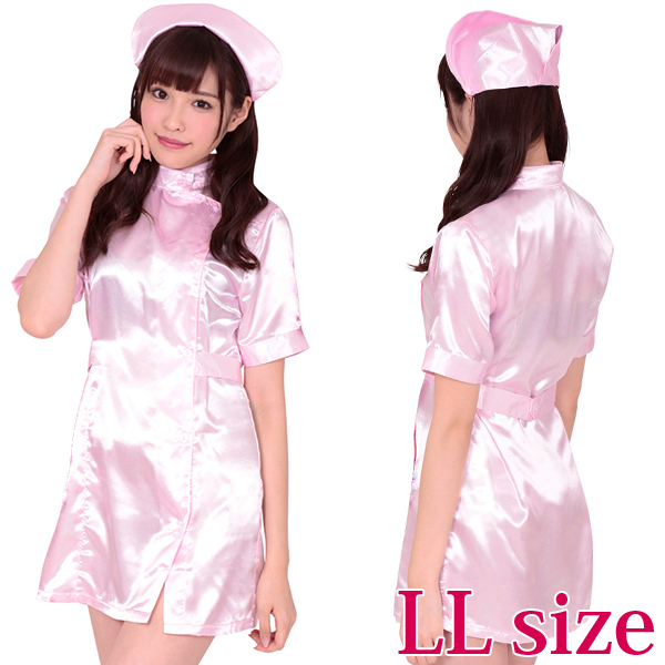 ミニワンピース&キャップがセットになったナース服のコスプレ衣装(LL)。ミニ丈ワンピのギリギリ感と光沢感のあるキュートなピンクカラーが、セクシーさと可愛らしさの両方を演出!フロントはボタン式で下まで開きます。※Mサイズ(b15884)、Lサイズ(b18108)あります。