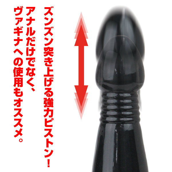 強力吸盤で固定力抜群!ソフトブラック樹脂製、ピストン機能付き電動アナルプラグ。亀頭のようなカリ下をジャバラに設計して、上下の振れ幅が約1cmの激しいピストン運動を実現!有線リモコンにすることで、手元で3段変速+バイブパターン7種類を操作できる、多機能アナルプラグが完成しました。突き上げ&振動、Wの刺激で猛烈エイナス責め!擦れる快感がたまらないアナルグッズです。単三電池4本とローション30ml付属。※製造時期によりパッケージのデザインが異なる場合がございますが中身は同じです。