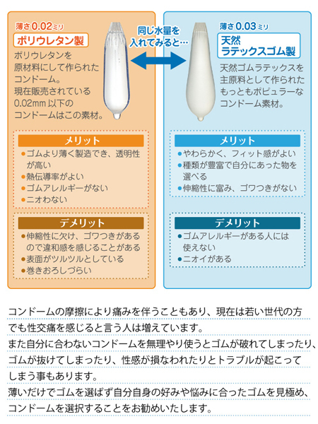 まるで着けていないかのようなフィット感!0.02mmの薄さでナマのような挿入感を楽しめるコンドーム(6個入)。ラテックスアレルギーの方でも安心のポリウレタン製で、嫌なゴム臭もカット。柔らかで薄く透明度が高いので、パートナーの体温を感じやすいのが嬉しいポイント。違和感のない着け心地で、二人のラブタイムを邪魔せずしっかりサポートしてくれるコンドームです。