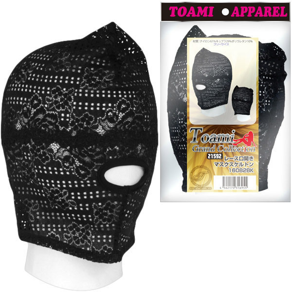 繊細レースでエロティックな雰囲気満点!花柄レースが彩りを添える、口開きタイプの全頭マスク。透け感たっぷりで目隠し要素はありませんが、程よく隠された姿にムードも興奮もUPすること間違いなし!口の部分は開いているので、フェラやイラマチオなどの口淫プレイも可能です。通常のアイマスクを併用すれば完全目隠しも可能なので、工夫次第で色々楽しめるSM用マスクです。