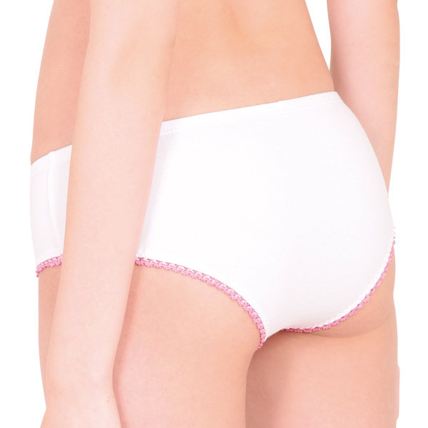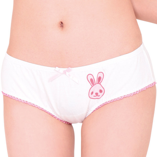<EROX>ラブリーなうさちゃんプリント付き♪素朴な雰囲気に癒やされるレディースコットンショーツ。●やさしい肌触りの綿混素材●フロントにウサギプリント●ちょこんと控えめなピンクリボン●脚ぐりをぐるりとピコットレースで加工●ヒップを優しく包むフルバック。シンプルだけどインパクトは抜群!深めの履き心地でしっかりフィットしてくれる安心デザインのランジェリーです。