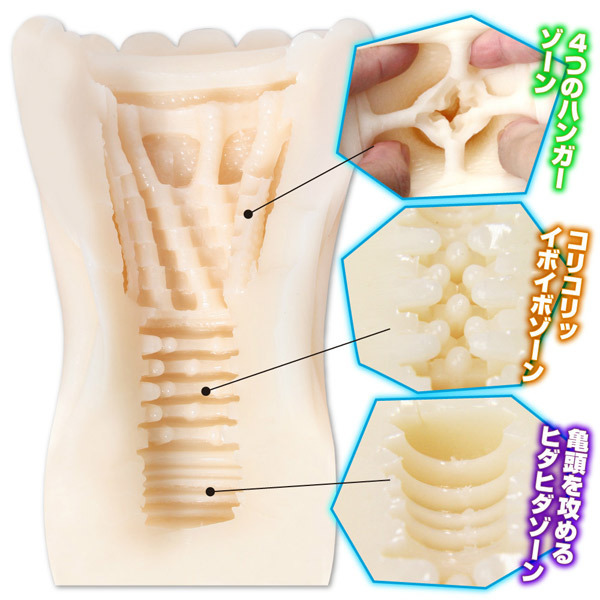 浮遊する独特構造がポイント!様々な快感を楽しめるハード系オナホール。●氷をイメージした幾何学模様入り●グリップしやすいくびれボディ●弾力感のあるややハードな質感●入口すぐに四方に広がるハンガー●穴がもう一つあるような挿入感●中盤:溝ヒダ×コリコリ粒々刺激●後半:先端を刺激する繊細横ヒダ。挿入したのにさらに内部に穴が出現?四方を吊るされたハンガー構造からジュポッと奥へ入り込んでいく不思議オナホール。プリッと弾力に攻撃的な内部で刺激度満点な仕上がりです。