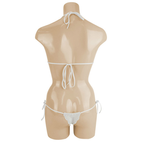 可憐な花柄刺繍を施したオールレースのセクシーブラ&ショーツセット。●ホワイトカラーの総レース仕上げ●可愛いスカラップレースデザイン●着心地の良いストレッチ素材●ホルタータイプのブラレット●サイドで結ぶTバックショーツ●上下共に紐でサイズ調整可能。美しくも可愛らしいフラワー刺繍のランジェリーセット!うっすらと肌を透かす総レースでセクシーさもしっかりアピール出来ちゃいます。
