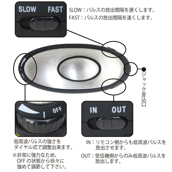 ただの振動では物足りない方へ!バイブとは異なる脈打つようなパルス刺激を味わえるプラグ型ローター。●超刺激的な低周波パルスローター●プラグ形状の「サンダーパルス3」●程良いサイズで前後共に挿入可能●プラグ側面両側からパルスを放出●取り外せるジャック差し込み式●ダイヤル式で簡単にコントロール●低周波パルスの強弱は無段階調整●放出速度間隔は2段階の切り替え可●リモコン側にもパルス機能を搭載。オナニーからSMプレイまで♪ビクンビクンと脈打つ低周波パルスの強烈刺激を味わえるエレクトログッズ「サンダーパルス3・デンジャープラグ」。リモコン側にもパルスが発生するシンクロパルス機能を搭載し、パートナーと快感を共有することも可能!アナルだけでなく、前後どちらにも使えるのでプレイの幅も広がりますね。※非常に強力な刺激の為、ご使用の際はOFFの状態から徐々に強めて調節してください。