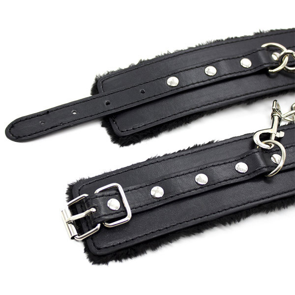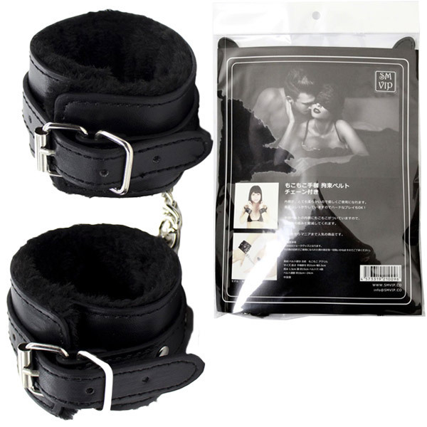 もこもこファー素材で優しく拘束♪チェーン付きのSM拘束手枷。●外側の黒ベルトは合皮素材●内側はもこもこアクリルファー●ベルト穴式でサイズ調整が可能●左右を繋ぐチェーン付き(着脱可)●お肌に痕が付きにくいので安心。初心者さんでも簡単拘束で気軽にSMプレイ!内側をふわふわのアクリルファーで覆ったSM手枷。肌当たりが優しく痛くなりにくいので、激しいプレイや長時間の着用も安心です。