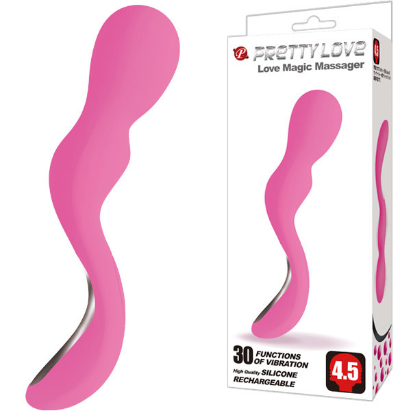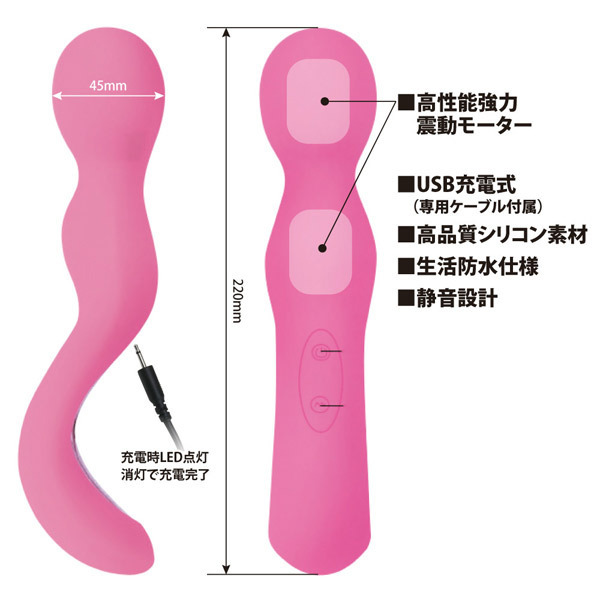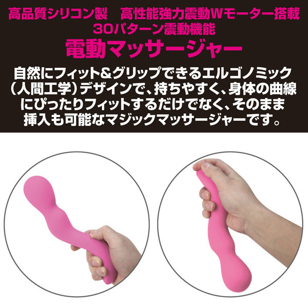 エルゴノミック(人間工学)デザインで自然にフィット♪押し当て&挿入も可能な電マ「プリティラブ ラブマジックマッサージャー」。●身体にフィットする曲線ボディ●安心安全な高品質シリコン素材●全長22.0cm、ヘッド径4.5cm●ヘッドと中腹にWモーター搭載●かつてないパワフルな振動刺激●市販のアタッチメントも装着可●30パターンの振動機能を装備●USB充電式(専用コード付属)。電マとバイブの要素を融合♪どんな体勢でも持ちやすいウェーブフォルムの「プリティラブ」シリーズの電動マッサージャー。フェアリーミニ専用アタッチメントなど、ヘッド径45mmの電マアタッチメントも装着可能です。