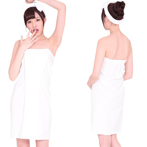 色っぽい湯上がり美人に♪セクシーなお風呂上がりのバスタオル姿を、そのままコスチュームにしちゃいました!目のやり場に困ってしまうバスタオル一枚のみを巻いた無防備な姿、そんな洋服とはまた違ったセクシーさを見せられるコスプレ衣装。湯上がり気分がさらにアップする白のヘアバンドもセットです。※セット内容以外は付属しておりません。