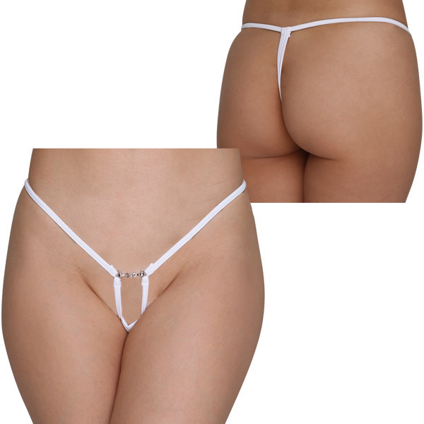 ローターがINできちゃうポケット付き♪フロントアクセがラグジュアリーなオープンショーツ。●ホワイトカラーのストレッチ生地●ほぼ紐オンリーの大胆オープン仕様●ワンポイントのフロントアクセ付き●ミニマム過ぎる極小クロッチ●クロッチ部分にローターポケット●後ろはセクシーなTバックタイプ。極小サイズの生地を繋いだ大胆デザインに衝撃!さらにこっそりローターポケットがついた大人仕様のセクシーランジェリー。クロッチ&ストリング共にストレッチ性があるので着心地も快適です。※ローターは付属しておりません。