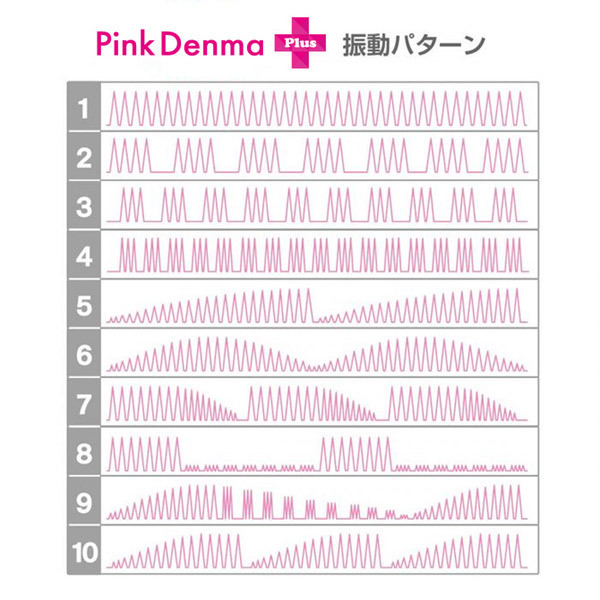 デンマの神が更にパワーアップして降臨!あの『絶対イカせる』強力電マが「ピンクデンマ1プラス」として登場。内蔵モーターの改良で振動力が17000回転へとグレードアップ!あらゆるニーズを満たす10種の振動パターンを搭載し、激しいだけでなくより柔らかな重振動とより繊細な微振動まで女性が求める甘くささやくような愛撫的な振動を実現しました。振動の強弱はダイヤル式の無段階コントローラーで自由自在に調整が可能。ヘッド径3.2Φcm対応のアタッチメントを装着可能なヘッド部分は、しなるように曲がるネック一体型の医療用シリコン製!汚れが気になったらすぐに水洗いできる生活防水仕様でいつでも清潔です。また、電池ボックスも改良され、底部を回して電池を入れるだけの簡単仕様でさらに使いやすくなりました。