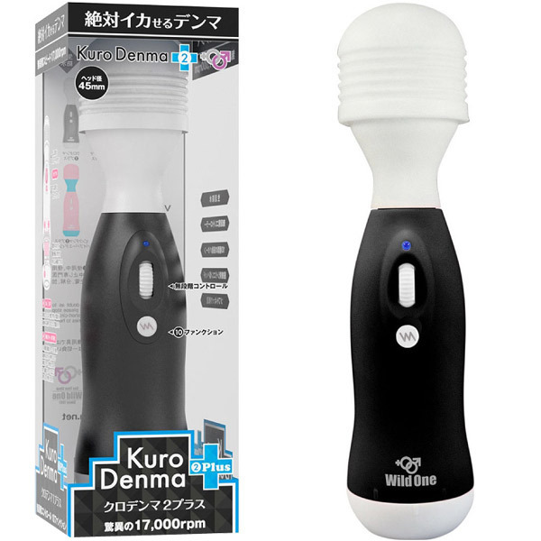 デンマの神が更にパワーアップして降臨!あの『絶対イカせる』強力電マが「クロデンマ2プラス」として登場。内蔵モーターの改良で振動力が17000回転へとグレードアップ!あらゆるニーズを満たす10種の振動パターンを搭載し、激しいだけでなくより柔らかな重振動とより繊細な微振動まで女性が求める甘くささやくような愛撫的な振動を実現しました。振動の強弱はダイヤル式の無段階コントローラーで自由自在に調整が可能。ヘッド径4.5Φcm対応のアタッチメントを装着可能なヘッド部分は、しなるように曲がるネック一体型の医療用シリコン製!汚れが気になったらすぐに水洗いできる生活防水仕様でいつでも清潔です。また、電池ボックスも改良され、底部を回して電池を入れるだけの簡単仕様でさらに使いやすくなりました。