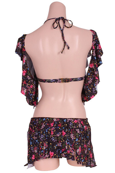 デコルテを輝かせるオフショルダーデザインのブラと切りっぱなしの共布フリンジをボトムに重ねて、どこまでも女性の「きれい魅せ」を意識しています。黒生地に可憐な小花プリントで麗しさを満喫。※こちらの商品は受注発注商品の為、ご注文から発送までに3、4営業日掛かる場合が御座います。