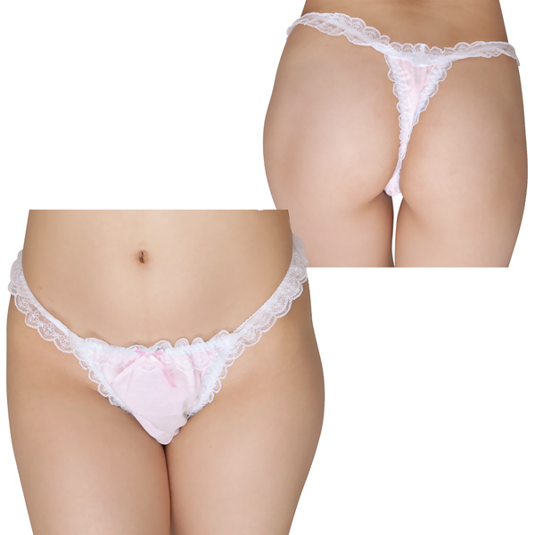 白レースコットンTバック ピンク