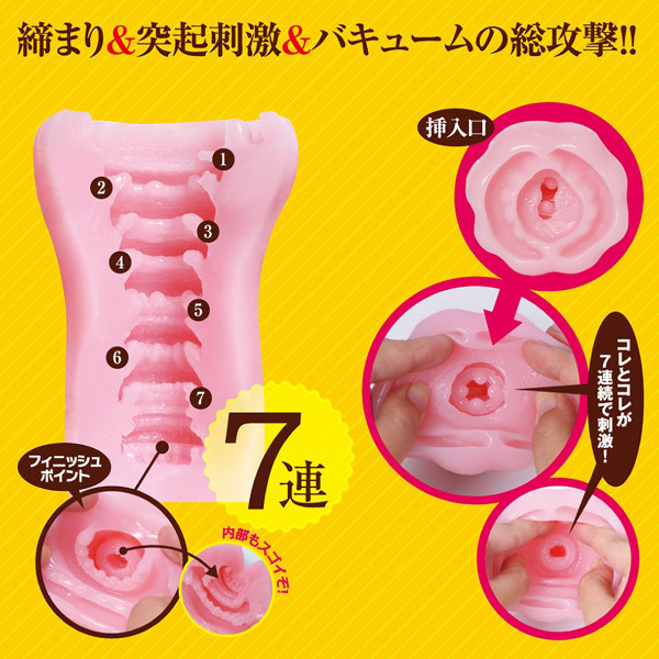 7連続のヒダ構造が堪能できる名器にも劣らぬ日本製の非貫通オナホがここに登場しました♪まるで入口がいくつもあるような特徴的な挿入口から覗かせるのは球状突起のあるヒダや肉厚ヒダ。最奥まで7つのリングが連なり、締め付け、強烈なバキュームをもって貴方のムスコを総攻撃する!本物のような気持ち良さを味わえる名器級のオナホや、子宮系オナホが好きな方は必見の商品です♪国産ローション付属