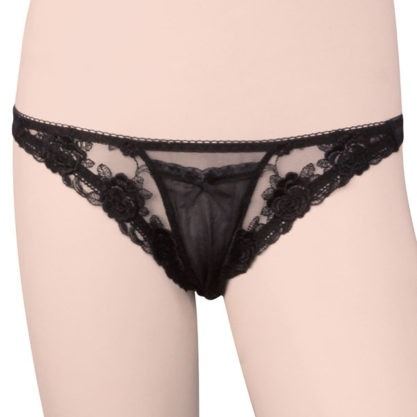 大人のオンナを一層引き立てる黒と魅惑のシースルー生地で男を虜に♪リボンとフラワーレース刺繍を施した日本製フルバックショーツ。見た目のセクシーさは勿論のこと、フロント部分に別途ミニローターを用意して仕込めば二人の夜も一層燃え上がります♪※ローターは付属しておりません。