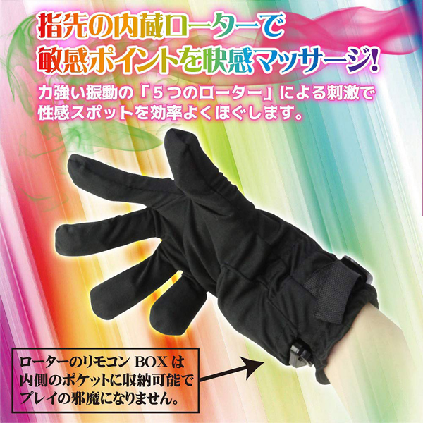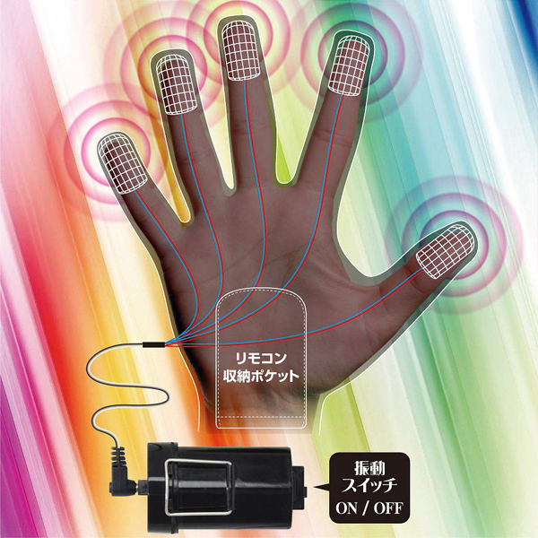 指先の5つのローターで敏感ポイントを快感マッサージ!力強い振動の「5つのローター」による刺激で性感スポットを効率よくほぐします。ローターのリモコンBOXは内側のポケットに収納可能でプレイの邪魔になりません。●右手用●ジャック式で電池BOXとローター部分の着脱可能