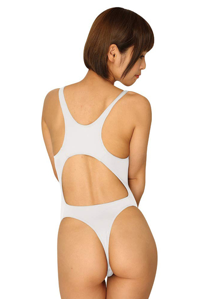 伸縮性があり身体へ程よくフィットするストレッチ生地を採用!ホワイトカラーが夏空に映える日本製の競泳水着コスプレ。セクシーなTバックで美尻をアピール!薄っすら透けて見える素肌にもドキッとする競泳水着コスプレです。