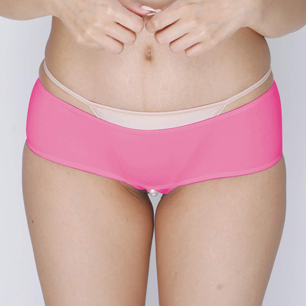 おへそ下ギリギリまでウエストのラインを下げた超ローライズデザインの女性用ショーツです。カラーはローズでデザインはボクサーパンツ風!素材もストレッチ素材のため身体にしっかり密着し穿き心地も快適♪アソコの部分がオープンになっていて連なるパールが付いているので、常に女性器を刺激してくれます。ショーツを穿いている間はずっとパールがアソコを刺激してくれる、見た目にも刺激的なローズカラーの一着です!