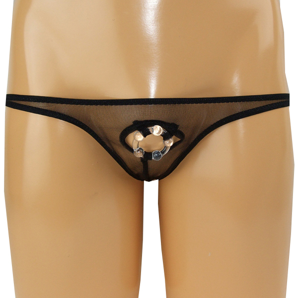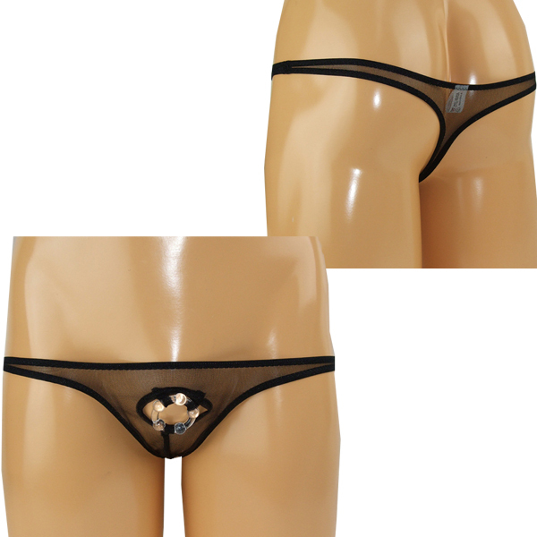 HOME > 下着 > 男性用ショーツ・ビキニ > 極薄穴あきイボリング付きTバック ブラック