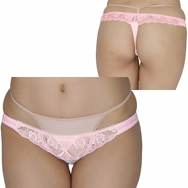 光沢柔らかポケット付きレースTバック ピンク