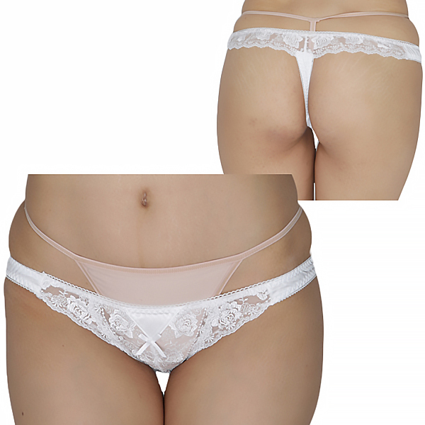 柔らかな光沢が美しい純白生地に、透け感のある花柄レースを組み合わせた日本製Tバック(白)。レースの隙間から見える素肌にドキッ♪股上を浅めに作ったローライズ仕様でセクシーさがより際立ちます。ピュアな印象を与える純白ショーツで男心をグッと掴んで♪