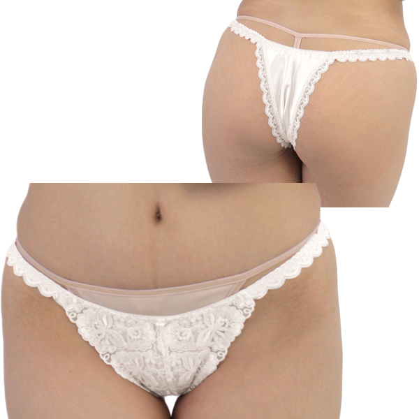 光沢ストレッチレース刺繍ハーフバック (ホワイト)