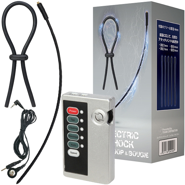 ビクンビクンと脈打つ快感!電撃刺激がクセになる低周波シリーズのエレクトリックグッズ(電池式)。ループを巻き付けブジーを挿入、あとはリモコンに接続するだけで低周波パルスによる電流責めが体感できる!4パターンのパルス×5段階のスピードを搭載♪普通の刺激では物足りない、より強い刺激をお求めの方に※ループとブジーは必ずペア装着でお楽しみ下さい。単4電池を2本使用
