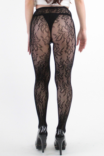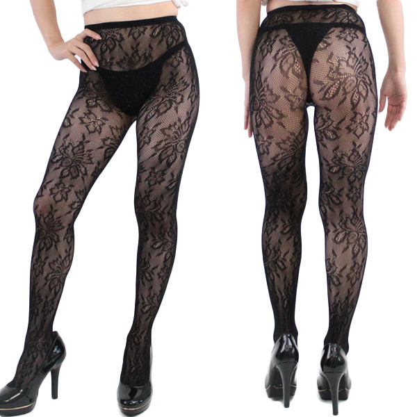 地味になりがちな秋冬ファッションのおともに!花柄模様の日本製ストッキング(黒)。細かな編み目に浮かび上がる花柄で足をさりげなくアピール!セクシー系のコーデやコス衣装とも相性抜群です♪
