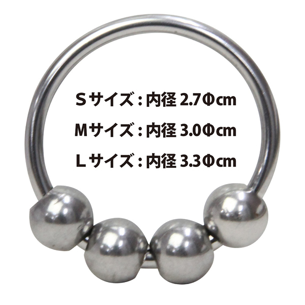 パートナーと刺激を分かち合うメタル製のコックリング。カリ首を締め付け男性をサポート!左右自在に可動する4つの金属ボールでパートナーのGスポをゴリゴリと刺激する♪拘束感が味わえるほか、プレイを一層盛り上げてくれる金属製のコックリングです。内径2.7cmのSサイズ