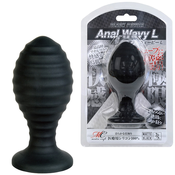 他では味わえない挿入感と刺激はアナルプラグの最高峰!医療用シリコンを100%使用したアナルグッズ「アナルウェービー(L)」の登場です。表面には独自開発されたウェーブ状の凹凸が施されていて、このでこぼこが挿入時にはバグツンのアクセントとなっています!形状はLサイズながらも入れやすいシンプルな弾丸形状となっていて、挿入した後も穴中でしっかりとした挿入感と圧迫感が味わえます。いざ入れてみるとズリッとした挿れ心地の快感プラグ!気持ちよすぎて鳥肌が立つ快感をぜひ一度お試し下さい。