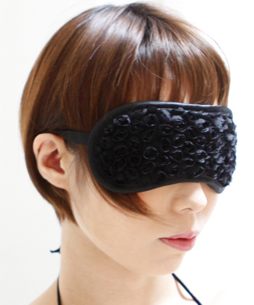 厚みのある生地が光を遮断!ドキドキ感を演出する黒の花飾りで装飾したゴシックなアイマスク。丈夫で耐久性の高いポリエステル素材を100%使用!花モチーフのエレガントなデザインが気分を高めます。機内での使用や睡眠時、光をシャットアウトしたい時に◎柔らかな優しい着け心地で、貴方のリラックス空間をサポートします。