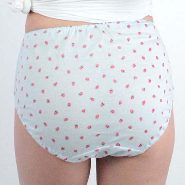 肌なじみの良いイチゴ柄コットン深履きショーツ サックス