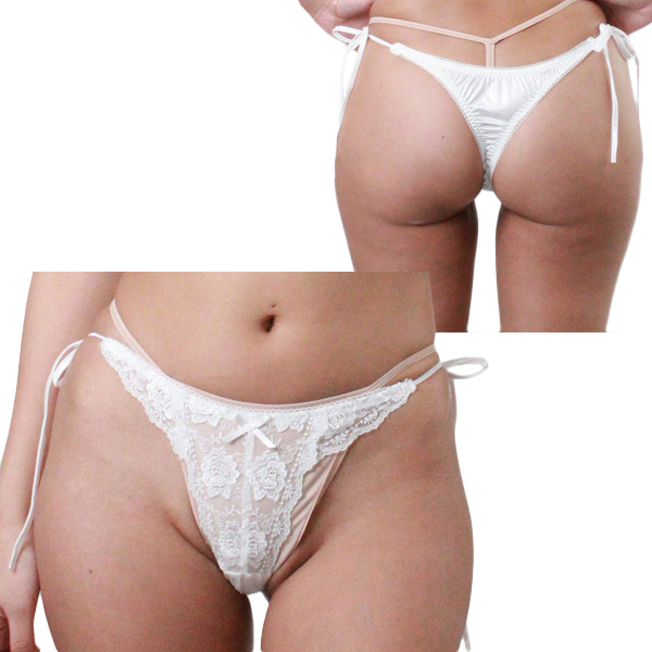 HOME > 下着 > ショーツ・パンティ > 光沢生地にレース付き脇ヒモTバック Lサイズ ホワイト