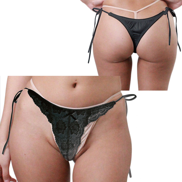 HOME > 下着 > ショーツ・パンティ > 光沢生地にレース付き脇ヒモTバック Lサイズ ブラック