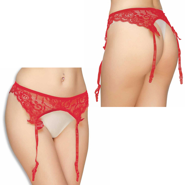 HOME > 下着 > ガーターベルト付 > 定番人気のフラワーレースガーターベルト (レッド)
