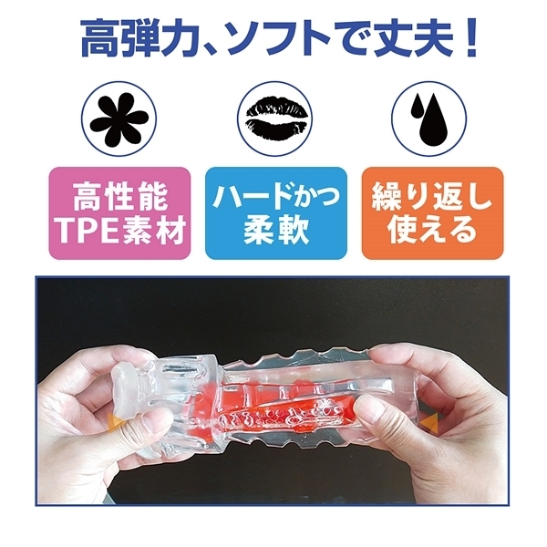 全体に絡みつく超刺激的な使用感が特徴の非貫通オナホ「CRYSTAL」。内部構造が違う3タイプからチョイスできるカップホールでこちらはハードな刺激タイプとなっています♪挿入すると前半からブロックヒダや最奥の突起部分が先端の尿道をハードに刺激!ハードな素材を採用しているのでギミックをしっかりと感じられるのが特徴です。ローション付。