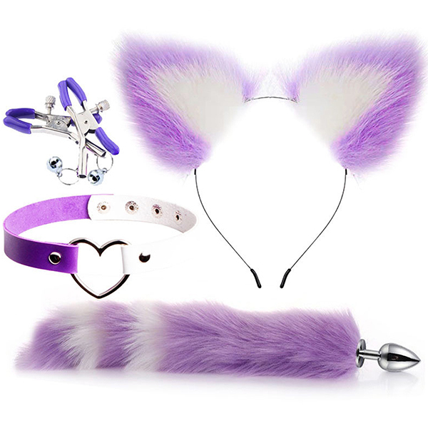 パッケージ:30.0×22.0×3.0cm 本体:耳カチューシャ約20cm×約20cm・首輪直径約12〜14cm・ップルクリップ(ハサミ口最大約1.6cm・長さ約5.6cm)・しっぽアナルプラグ直径約2.7cm・しっぽ長さ約40cm セット内容:耳カチューシャ、首輪、ニップルクリップ、しっぽアナルプラグ 原産国:中国 重量:本体135g