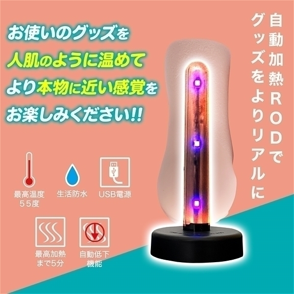 いつものグッズに体温のような温もりを与えて本物に近い体験を!スタンドタイプのウォーマなので温める時だけでは無く、使用後の乾燥にも使用可能です。USBを挿すだけの操作が要らないラクラク仕様。全長125mm、ロッドの長さ110mmと汎用性のあるサイズとなっております。
