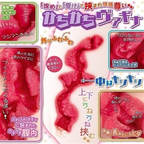 「やわらか」ボディで「かちかち」ヴァ○ナ!ちょっと珍しい<外はふわふわ・中はキツキツ>のオナホールなのです。まずはレアなホワイト素材を使用してロ○らしい「色白美肌」の外観に。そして、お腹は「ぽっこりイカ腹」、局部はちっこい「とじ○ン」とキュートな造型です。内部構造は「かちかちヴァ○ナ」を最大限に愉しんでいただくために上部は凸構造、下部は凹構造で構成し「ぴったり挟みこむ」仕様となっています。