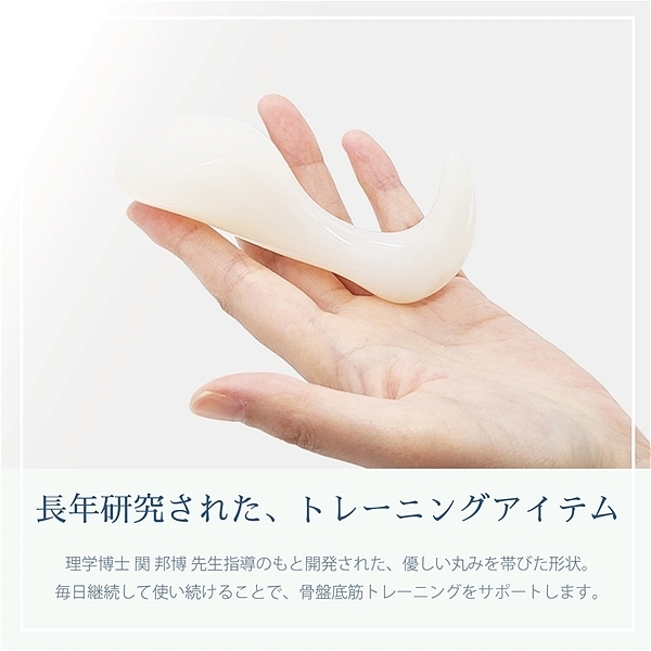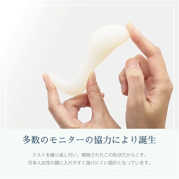 いれるだけの簡単、膣サポトレーニング初めの一歩!毎日継続して使い続けることで、膣壁を支える骨盤底筋のトレーニングをサポートします。多数のモニターの協力を得て、テストを繰り返し誕生したこの形状だからこそ、日本人女性の膣に入れやすく抜けにくい設計です。短時間から始められるので、膣トレ初心者さんにも。慣れてきたら、徐々に使用時間を増やしてみてください。