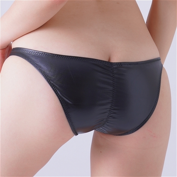 エナメル生地の光沢感がセクシーさを際立たせる、食い込みフルバックショーツ。●カラー:ブラック