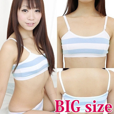 楽チン!かわいい!サックス×ホワイトのしましま柄スポーツブラ(BIG)。太めのボーダーでピュア感たっぷり!もちろん肩紐の調節も可能です。しまパンと併せれば萌え度もさらにUP!普段着やコスプレ衣装のお供にどうぞ。※水洗い不可、塩素系漂白剤による漂白不可、アイロンは中温で当て布使用、ドライクリーニング可、色落ちの可能性がありますのでご注意ください。※こちらの商品は在庫の状況によりお届けまでに4日〜7日程度かかる場合がございます。