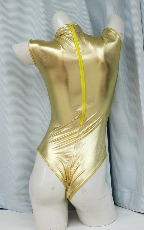 カラダのラインが綺麗に出る素材と、ゴールドカラーが美しいハイネックのレオタード。ボディはピッチリ隠して、しなやかな腕と脚は剥き出しに!腰をくねらす度によれるクロッチとヒップが、マニアックエリア好きにはたまりません!伸縮性のある生地なので、バストもクビレも浮き彫りに!ハイネックがストイックな印象…だけど、それが逆にそそられるセクシーコスチュームです。※水洗い可、塩素系漂白剤による漂白不可、ドライクリーニング可、色落ちの可能性があります。※こちらの商品は在庫の状況によりお届けまでに4日〜7日程度かかる場合がございます。