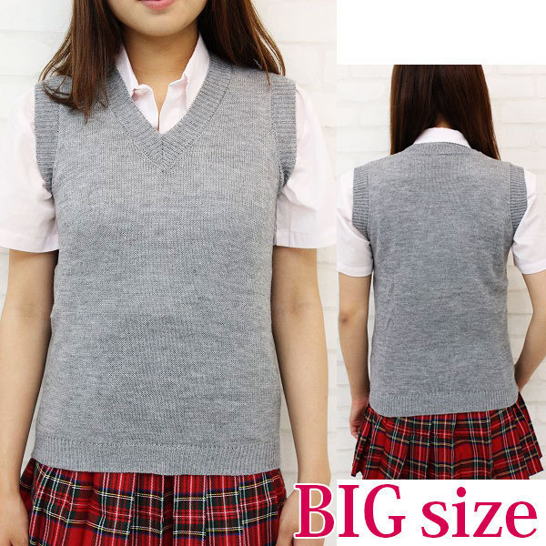 制服コスプレと相性抜群!オールシーズンOKなグレーの無地ニットベスト単品(BIG)。マルチに活躍する定番のVネックベストは、ブレザーの下に着ても、そのまま白シャツに合わせても可愛い!1枚あると便利なコスプレ小物です。※水洗い不可、塩素系漂白剤による漂白不可、アイロンは中温で当て布使用、ドライクリーニング可、色落ちの可能性があります。※こちらの商品は在庫の状況によりお届けまでに4日〜7日程度かかる場合がございます。