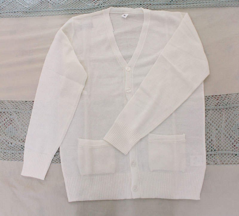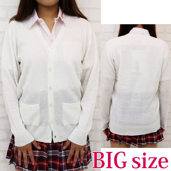 どんなファッションにも合わせやすいホワイトカラーの「ニットカーディガン」が新登場!一枚で何役も果たしてくれる優れものです。制服コスプレだけでなく「ちょっとそこまで」の外出時にも、上に羽織ればオシャレ度UP!寒い季節には手放せない必須アイテムです。こちらは大きめのBIGサイズでございます。※水洗い不可、塩素系漂白剤による漂白不可、アイロンは中温で当て布使用、ドライクリーニング可、色落ちの可能性があります。※こちらの商品は在庫の状況によりお届けまでに4日〜7日程度かかる場合がございます。