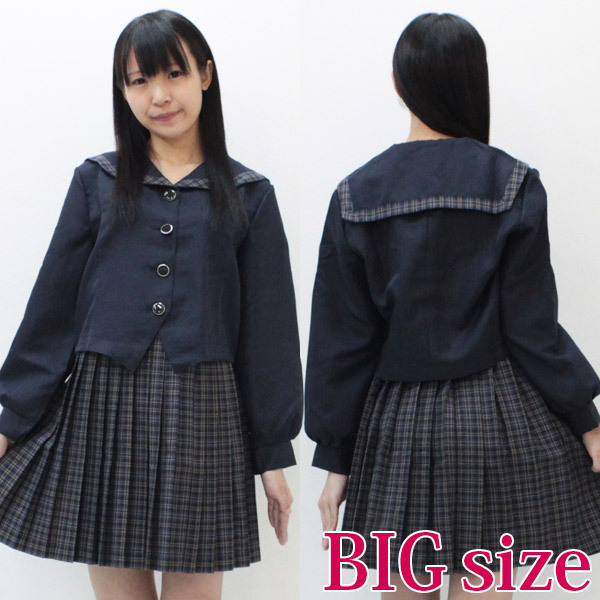 ブレザーみたいなデザインがキュート!大きめボタンのセーラーブラウスがアクセントになった、清楚系な冬服コスチューム。アジャスター調節が可能なスカートと襟のライン部分は、お揃いのクラシカルチェックで可愛さUP!おしとやかな雰囲気が漂う制服コスチュームです。※水洗い不可、塩素系漂白剤による漂白不可、アイロンは中温で当て布使用、ドライクリーニング可、色落ちの可能性があります、ご注意ください。※こちらの商品は在庫の状況によりお届けまでに4日〜7日程度かかる場合がございます。
