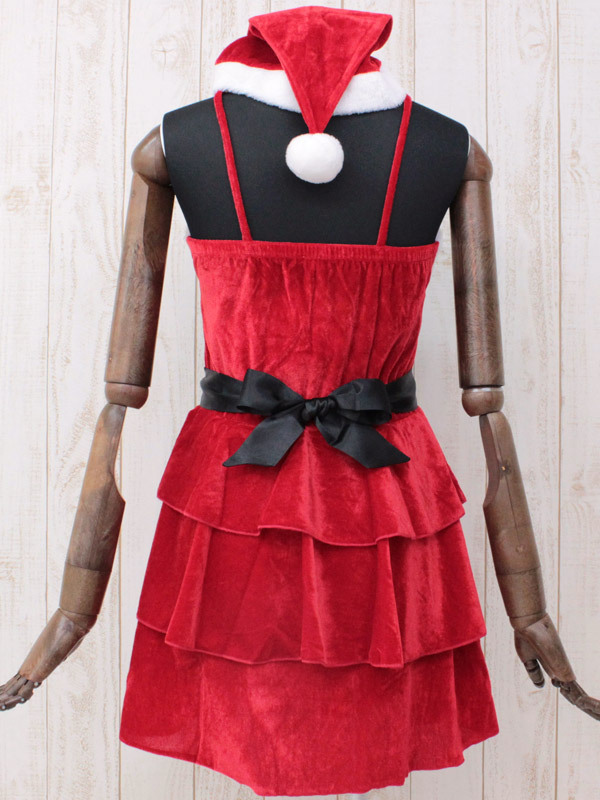 女の子らしさを最大限に発揮!三段フリルがドレッシーなサンタワンピ&帽子のセット。胸元リボンが可愛いキャミワンピの腰に、さらにリボンを巻いてウエストマーク!ふんわり広がるティアードワンピースのキュートなサンタ衣装です。※水洗い不可、塩素系漂白剤による漂白不可、アイロンは中温で当て布使用、ドライクリーニング可。※こちらの商品は在庫の状況によりお届けまでに4日〜7日程度かかる場合がございます。